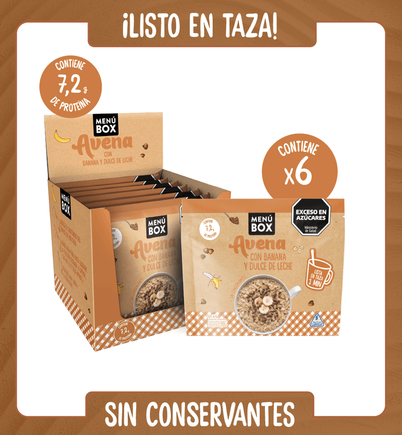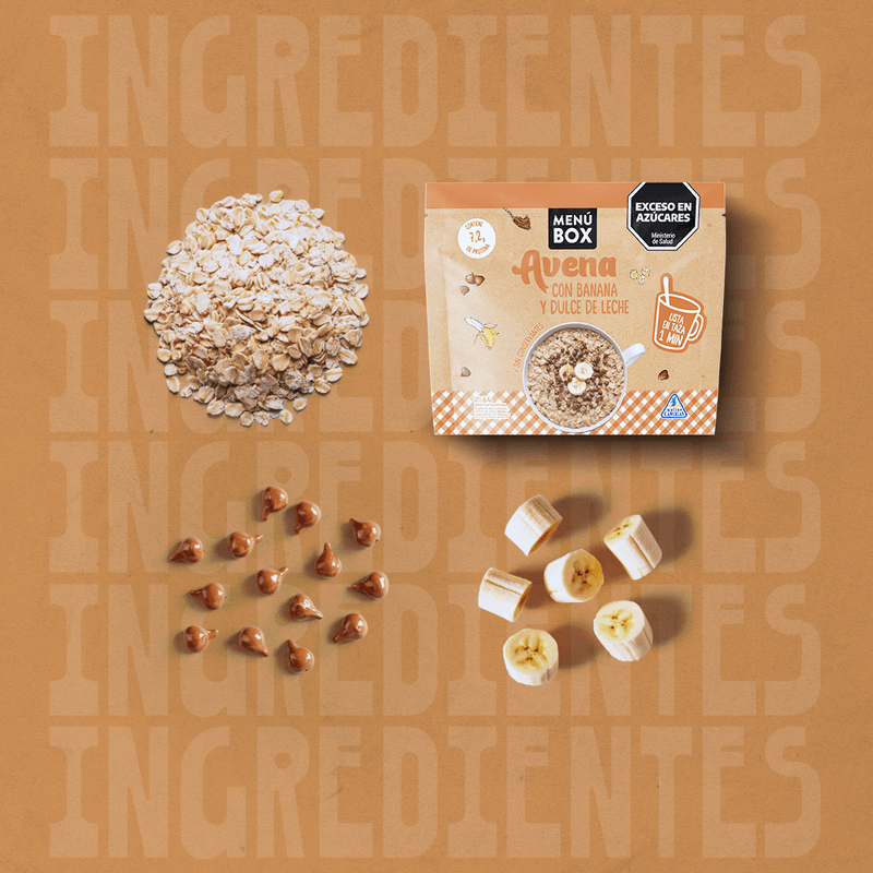 Banana + chips de dulce de leche. Avena que abraza.