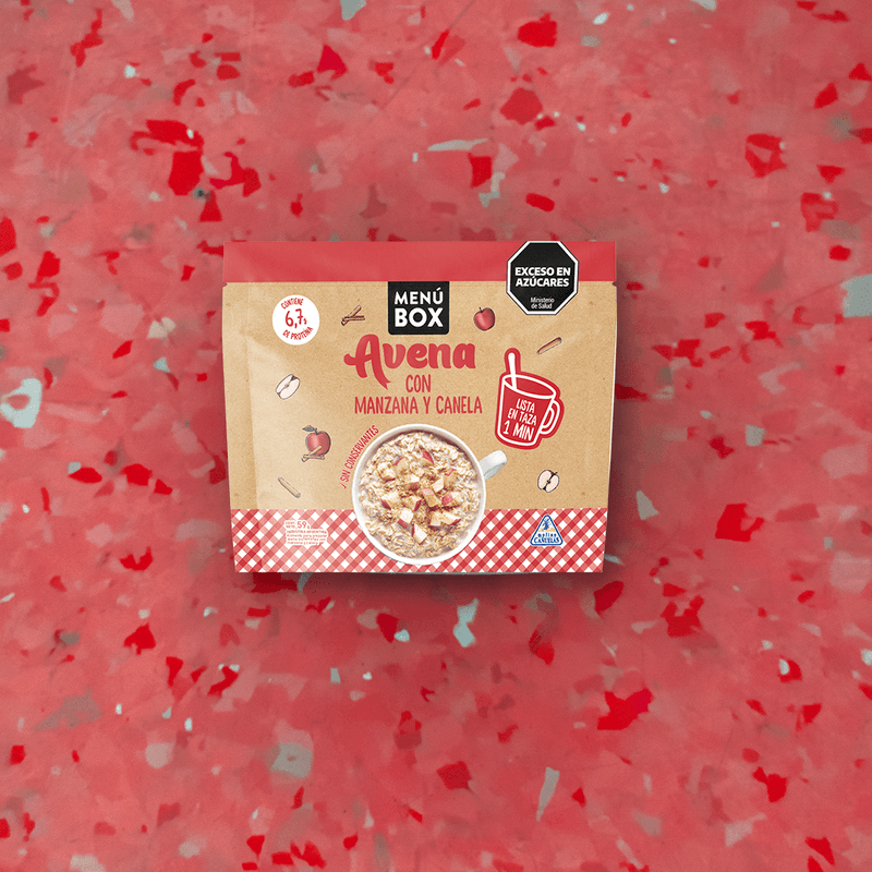 Con pedacitos de manzana liofilizada que conservan todo su sabor y nutrientes. Solo agregás agua y disfrutás!
